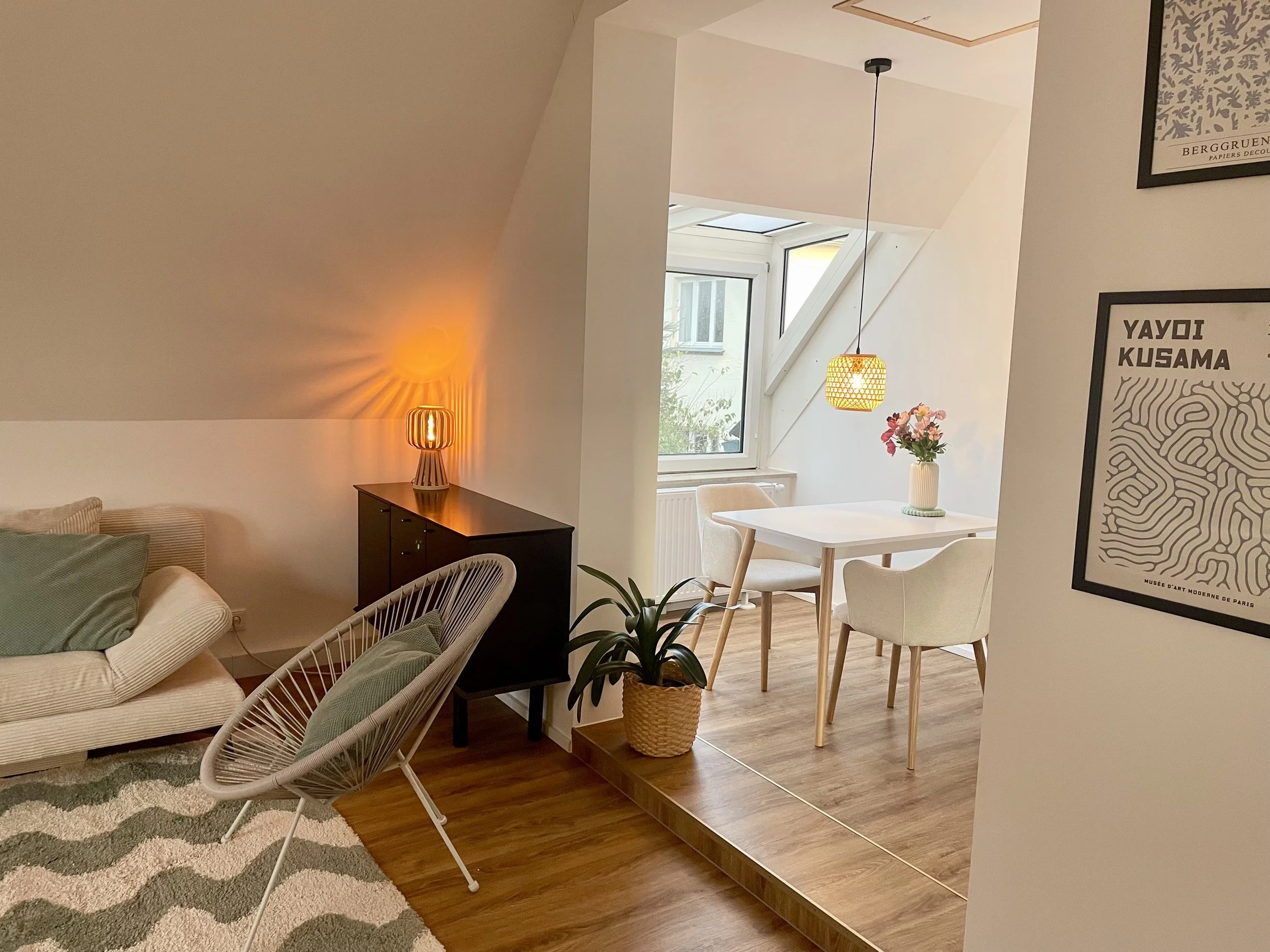Vollmöblierung, z.B. chilliges Sofa, Smart-TV, Tisch mit Stühlen, Bett (180cmx200cm)
